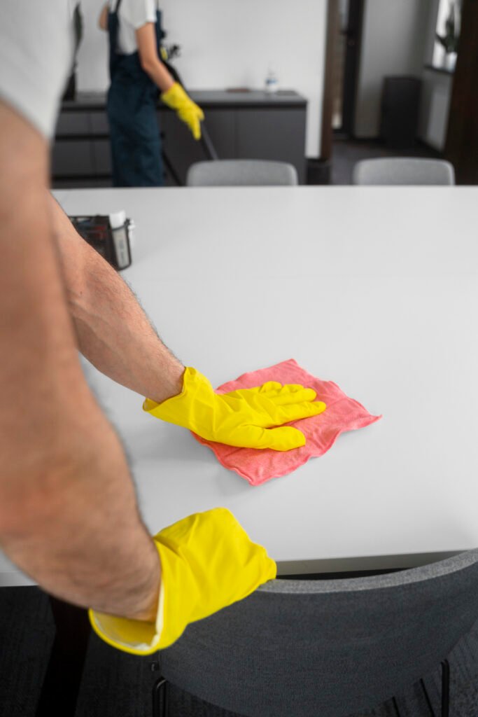 Ein sauberes Büro ist entscheidend für ein professionelles Erscheinungsbild und ein angenehmes Arbeitsklima. Mit unserer Büroreinigung sorgen wir zuverlässig für Hygiene, Ordnung und Sauberkeit in Ihren Geschäftsräumen. Ob kleine Büros oder große Arbeitsflächen wir passen unsere Leistungen individuell an Ihre Anforderungen an und gewährleisten eine gründliche und regelmäßige Reinigung.